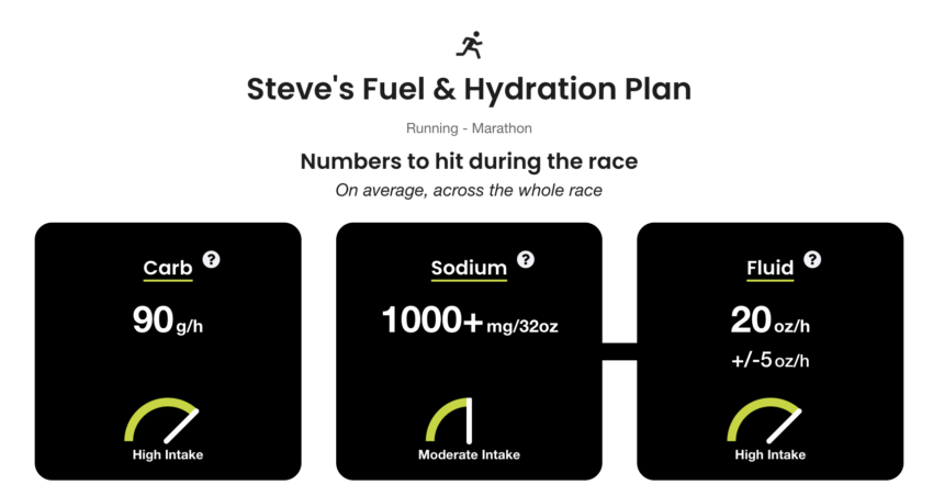Playing around with their planner this week for a potential fall marathon, I noticed the numbers would be slightly different this time around. More carbs and more fluid for some reason.