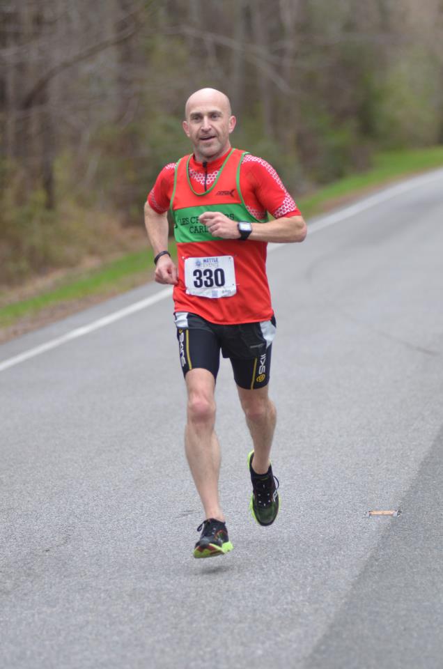 I maintained pace to the turnaround cone, then stepped things up a notch for the remainder of the race, feeling good the whole way to the finish line, with no issues whatsoever. Even the tendon on top of my left foot that’s been bothering me since Rocky Raccoon didn’t trouble me today.